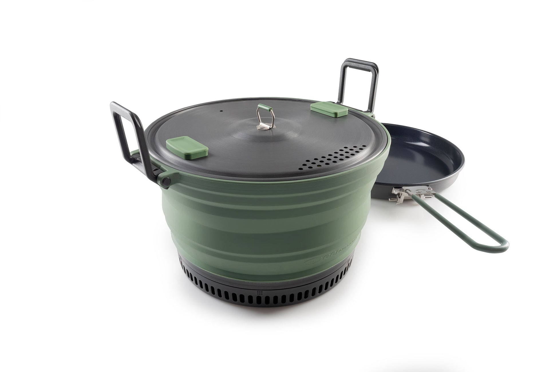 Includes: 3 L Collapsible Pot, Folding Handles, Strainer Lid, 9" fry pan, Folding, Locking Handle, Stuff Sack