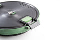 CAUTION: Never heat Escape cookware to extreme temperatures or allow it to boil dry. Pot and Strainer Lid intended for camp stovetop use only. Not for use with microwave ovens, conventional ovens or open campfires. Pot is not intended for use with hot oil or grease. Lid and handles may become hot when cooking. Always use caution when grasping handles. Never expose handles to direct flame.