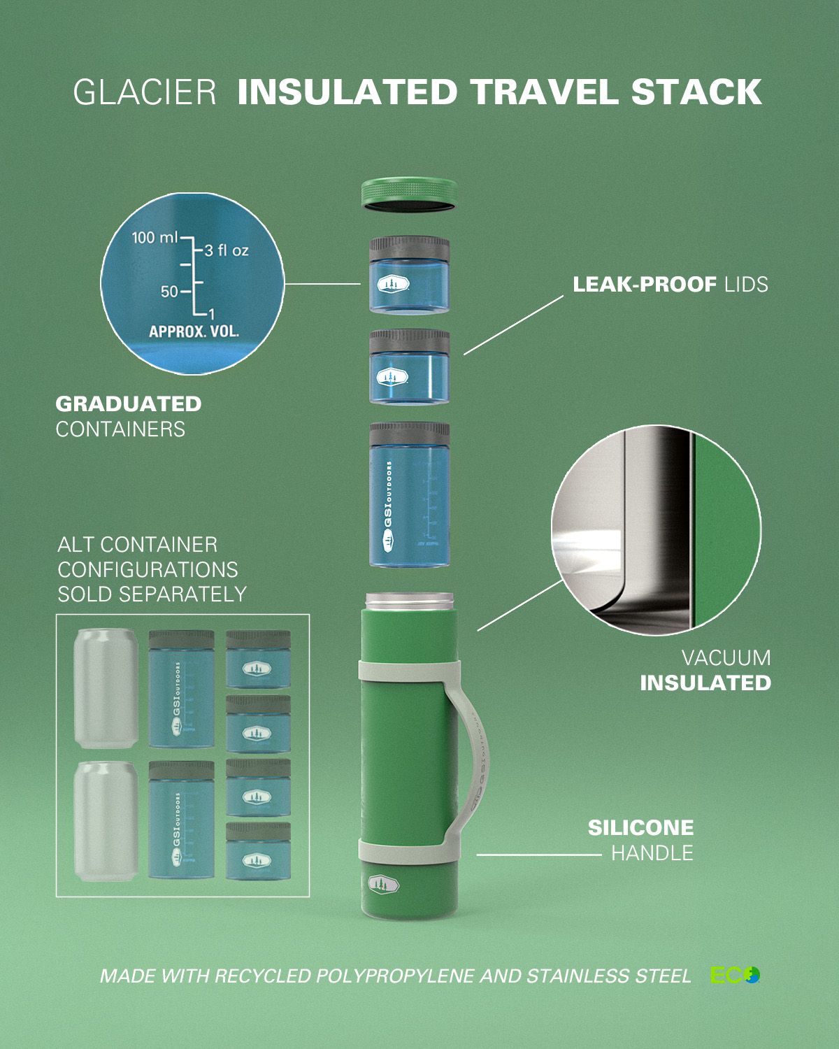 The clear plastic design lets you easily view contents, while molded volume markings support portion control. Stackable and space-saving, these containers integrate seamlessly with the 2 Can Cooler Stack and Glacier Insulated Travel Stack for a customizable system.